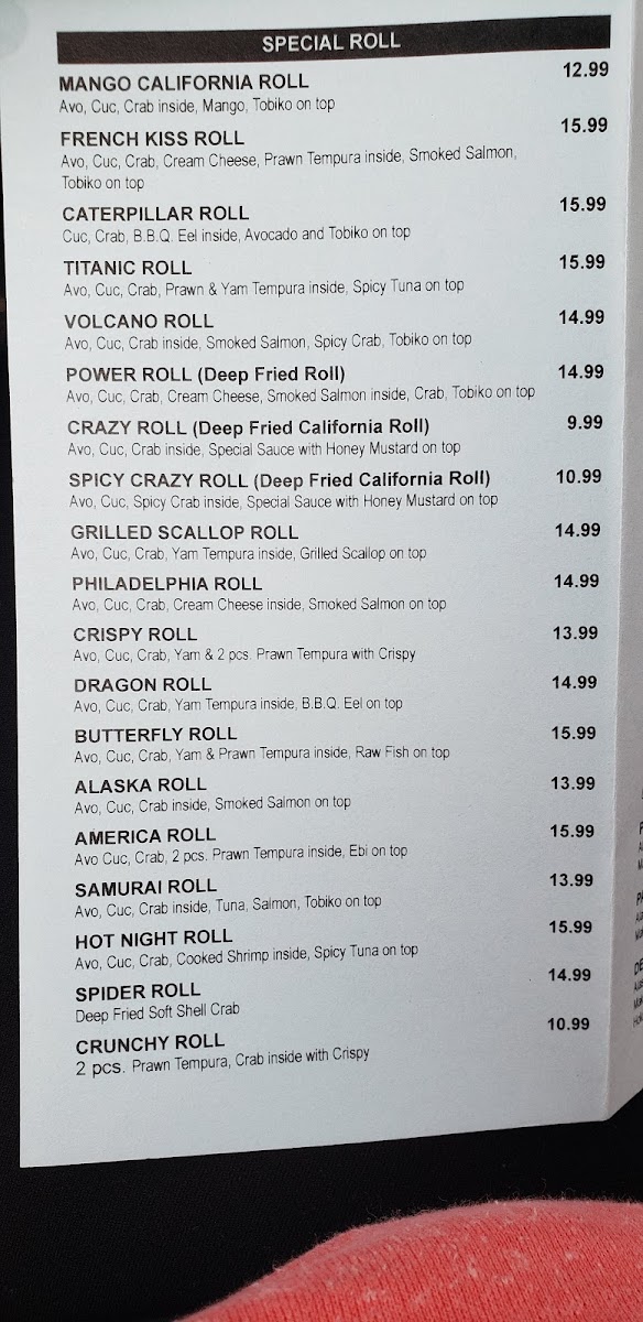 The menu boasts an impressive array of options, from the California Roll to the indulgent Dynamite Roll, each roll lovingly crafted with fresh ingredients. The Tempura selection is equally compelling, featuring a delightful mix of prawns and vegetables, perfect for sharing.